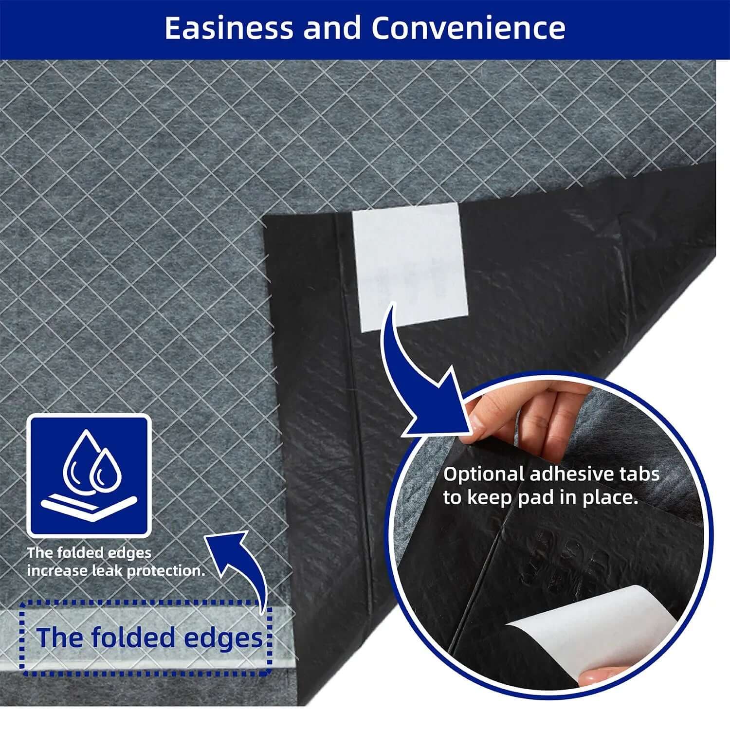 The pee pad contains bamboo charcoal components, which effectively absorb odors, provide strong water absorption and locking capabilities, and ensure dryness and leak prevention. It features a PE leak-proof bottom film and uses imported wood pulp from the United States, ensuring durability. Each box contains 50 sheets, addressing short-term needs for pets.
